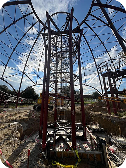 La phase de fabrication dans nos ateliers est désormais achevée, et les travaux d’aménagement ont débuté sur le terrain.
