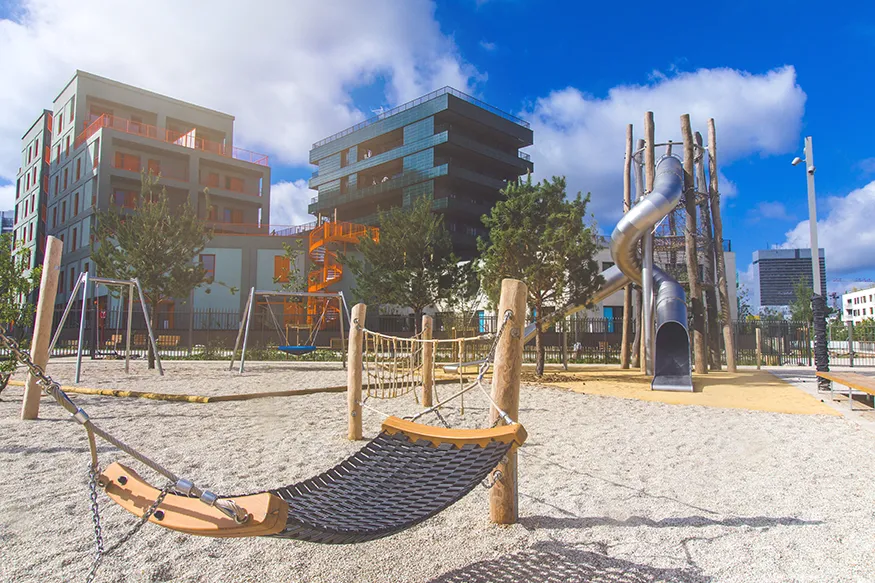 Résultat : l’aire de jeux devient un poumon ludique, une respiration verte et conviviale au sein de la ZAC.