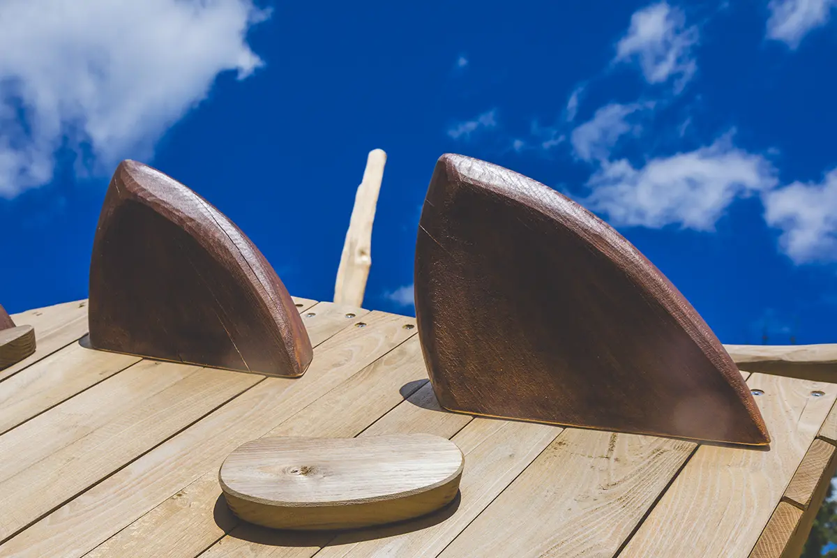 Cet ensemble permet à l’aire de jeux de se fondre dans le paysage, tout en conservant une identité forte.