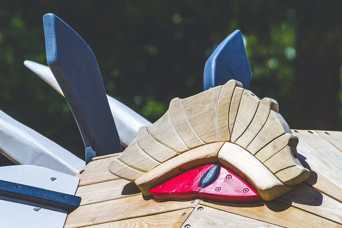 Les enfants grimpent sur les ailes, glissent le long de la queue, observent le paysage depuis la tête ou s’aventurent autour des pattes du dragon.