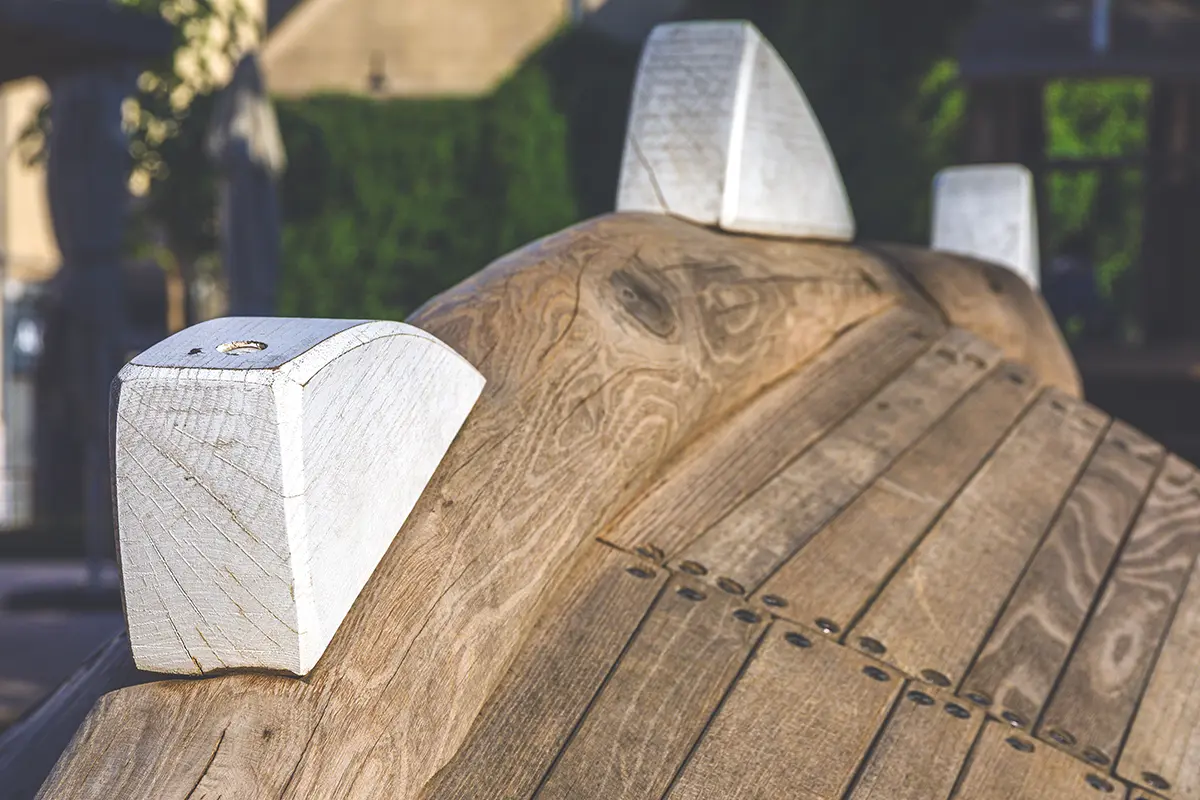 C’est exactement ce qui en fait un repère fort : un élément à la frontière entre sculpture et ludique. Les enfants l’adoptent instantanément, les adultes la perçoivent comme un clin d’œil au patrimoine, les visiteurs y voient un symbole contemporain qui anime l’espace.
