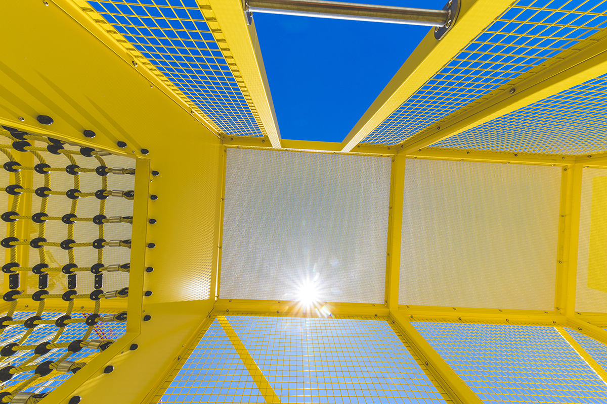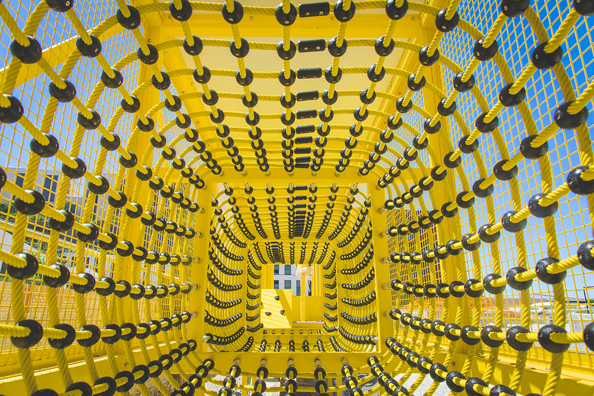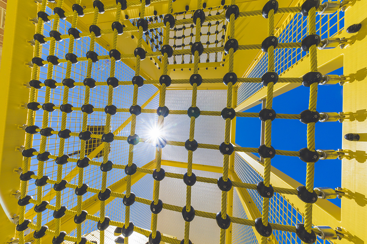 - un tunnel en cordage qui permet de ramper, de se balancer légèrement, et de développer coordination et équilibre ;