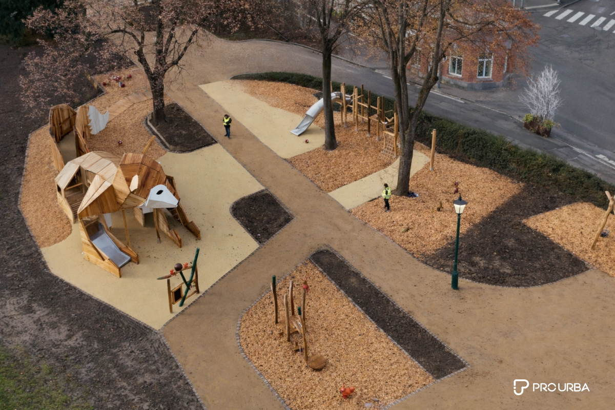 Pro Urba a été à l’origine de l’ensemble des choix de conception : formes, matériaux, typologies de jeux et ambiance globale.