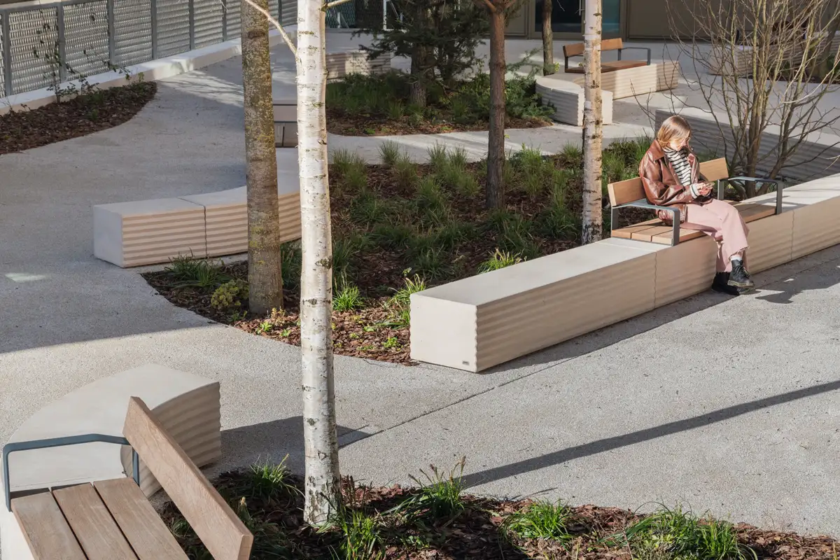 STRAT est une collection d'assises qui se caractérise par ses faces avant et arrière en géométrie zig-zag. La combinaison de sa volumétrie compacte et des motifs de surface, alterne la dureté d’une pièce sobre et simple avec le dynamisme d’un organisateur d’espace, facteurs clés de l’architecture urbaine.