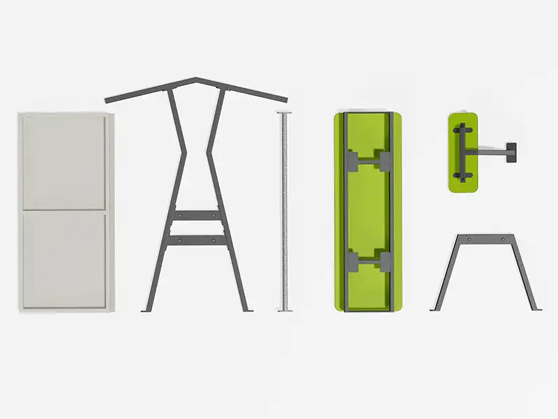 ROOFUS est une combinaison table-banc robuste, dotée d'un toit en tôle claire – l'endroit parfait pour se réunir en toute convivialité. ROOFUS offre une protection contre le soleil brûlant, ce qui peut être une véritable oasis dans les villes de plus en plus chaudes d'aujourd'hui. En cas d'averses inattendues, vous trouverez sous un aménagement ROOFUS un endroit sec où vous abriter.Vous pouvez choisir entre différentes constellations, qui varient en hauteur de table ainsi qu'en type de siège. Il est possible de juxtaposer plusieurs constructions et de créer ainsi un long siège.Ensemble de 3 sets pour 6 assises.Kit de fixation vendu séparément.