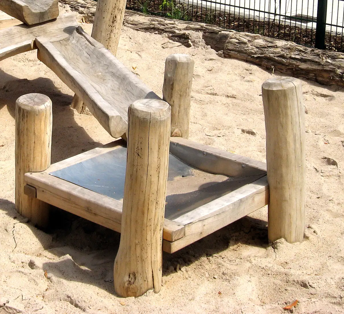 Équipement ludique de manipulation pour espace de jeux d'eau et sable.Matériau: robinier écorcé sans aubier - acier inoxydable.Coloris (option lasuré) : peinture à base d'eau.Assemblage : type A2 avec tiges filetées, boulonneries autobloquantes en acier inoxydable et capuchons de protection.Dimensions données à titre indicatif: le design des équipements est basé sur les formes naturelles des branches, de leurs fourches et de leurs ramifications.