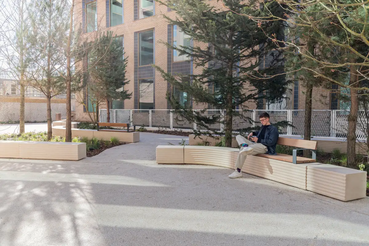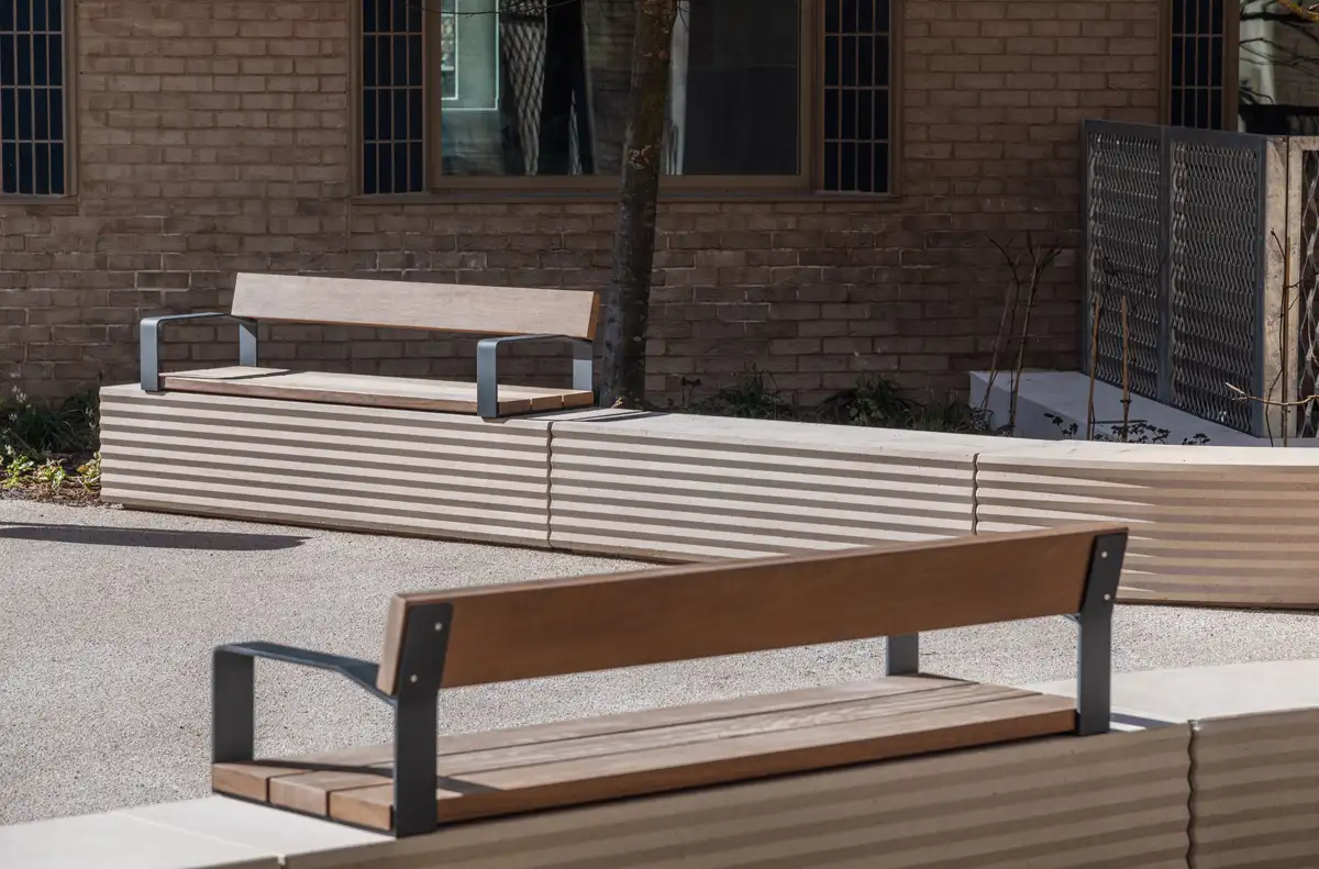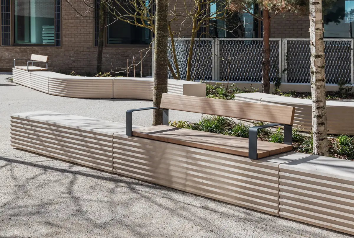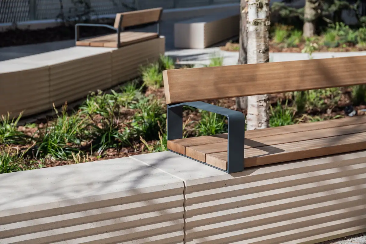 STRAT est une collection d'assises qui se caractérise par ses faces avant et arrière en géométrie zig-zag. La combinaison de sa volumétrie compacte et des motifs de surface, alterne la dureté d’une pièce sobre et simple avec le dynamisme d’un organisateur d’espace, facteurs clés de l’architecture urbaine.Matériaux: béton coloré en masse, décapé et imperméabilisé avec finition anti-graffiti - Assise et dossier en pin nordique PEFC™ avec huile neutre ou Bolondo certifié FSC® avec protection anti-tanin et huile monocouche.