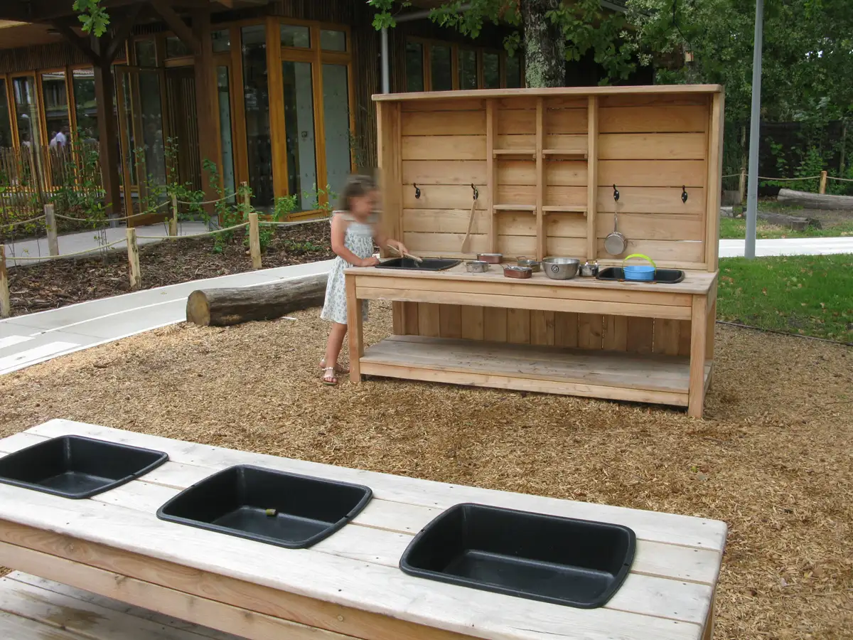 Mobilier ludique comprenant une étagère basse et un plateau d'usage.Hors bacs en plastique.Montage et assemblage en atelier.