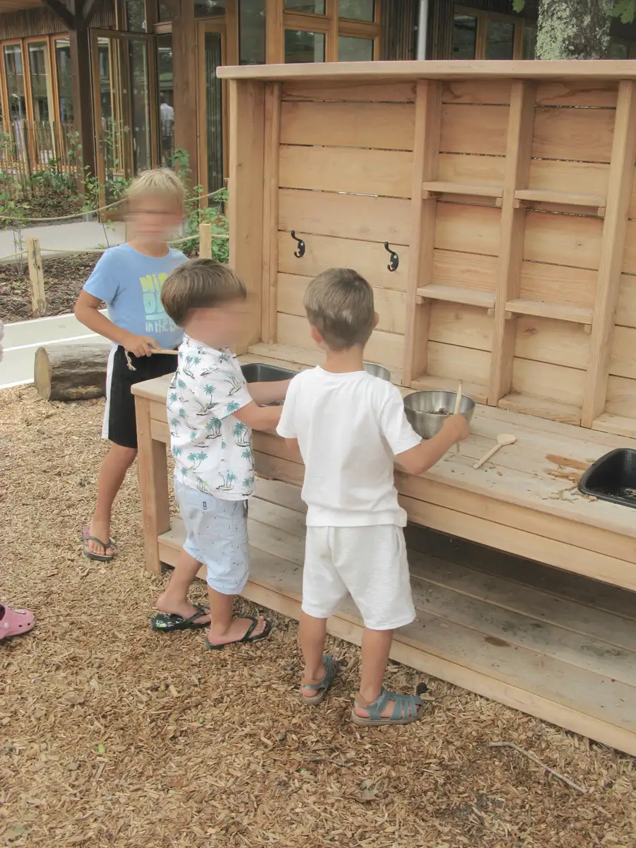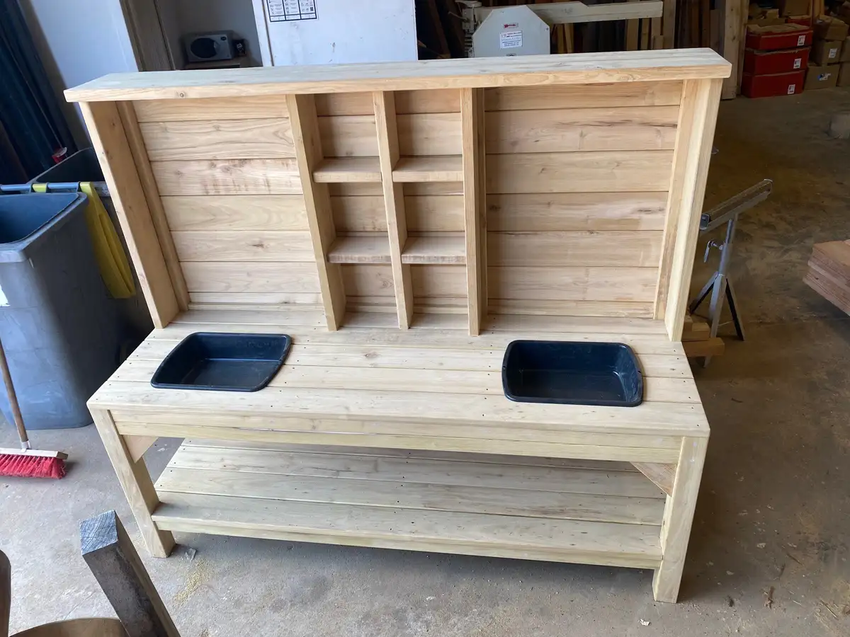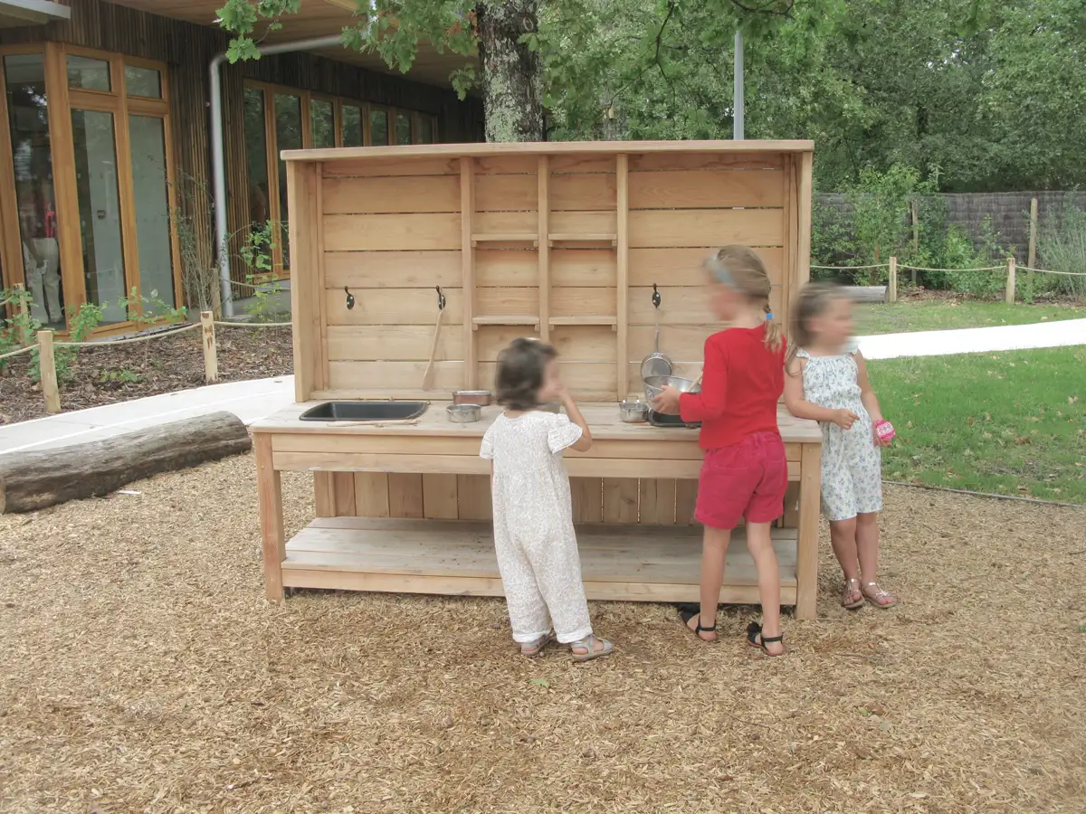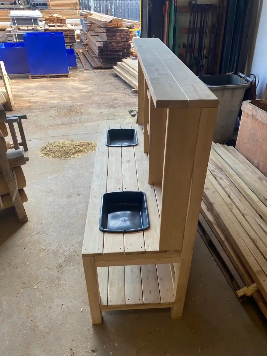 Mobilier ludique comprenant une étagère basse et haute ainsi qu'un plateau d'usage.Hors bacs en plastique.Montage et assemblage en atelier.