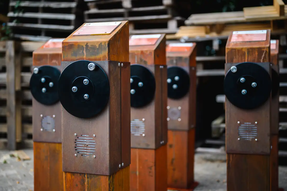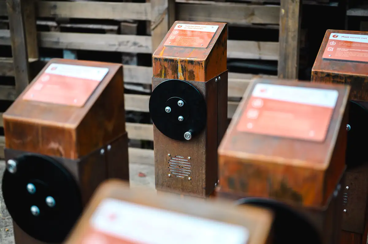 Les possibilités sont infinies avec la colonne audio. Partagez votre histoire de manière captivante avec les enfants, les visiteurs et les inconnus. Créez une expérience qu'ils n'oublieront pas ! Faites tourner la roue pour générer de l’énergie humaine durable. La colonne audio utilise cette énergie pour partager des histoires et de la musique via le haut-parleur résistant aux intempéries, un son numérique d'une clarté cristalline.Coloris standards RAL 9006, RAL 9005 et RAL 2008.Ancrage non inclus: 1x type 1 (Réf 70111-F).Également disponible en version coloris RAL au choix.