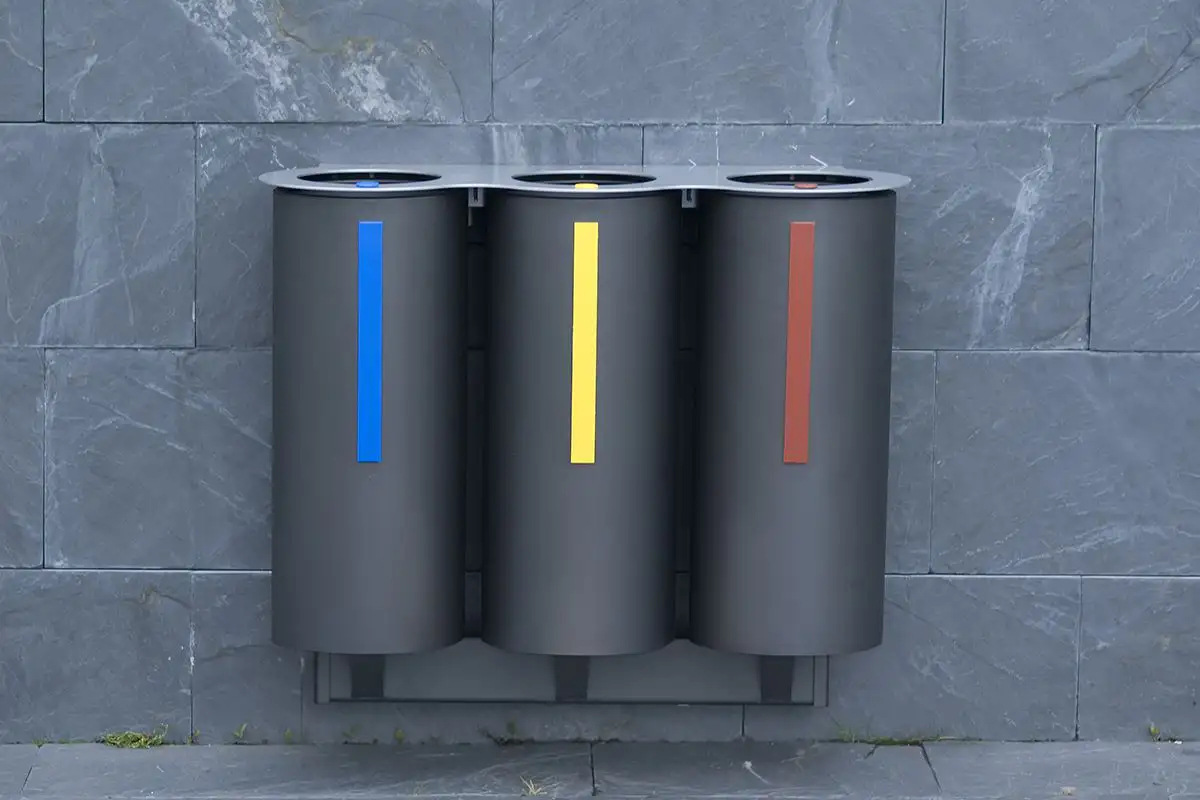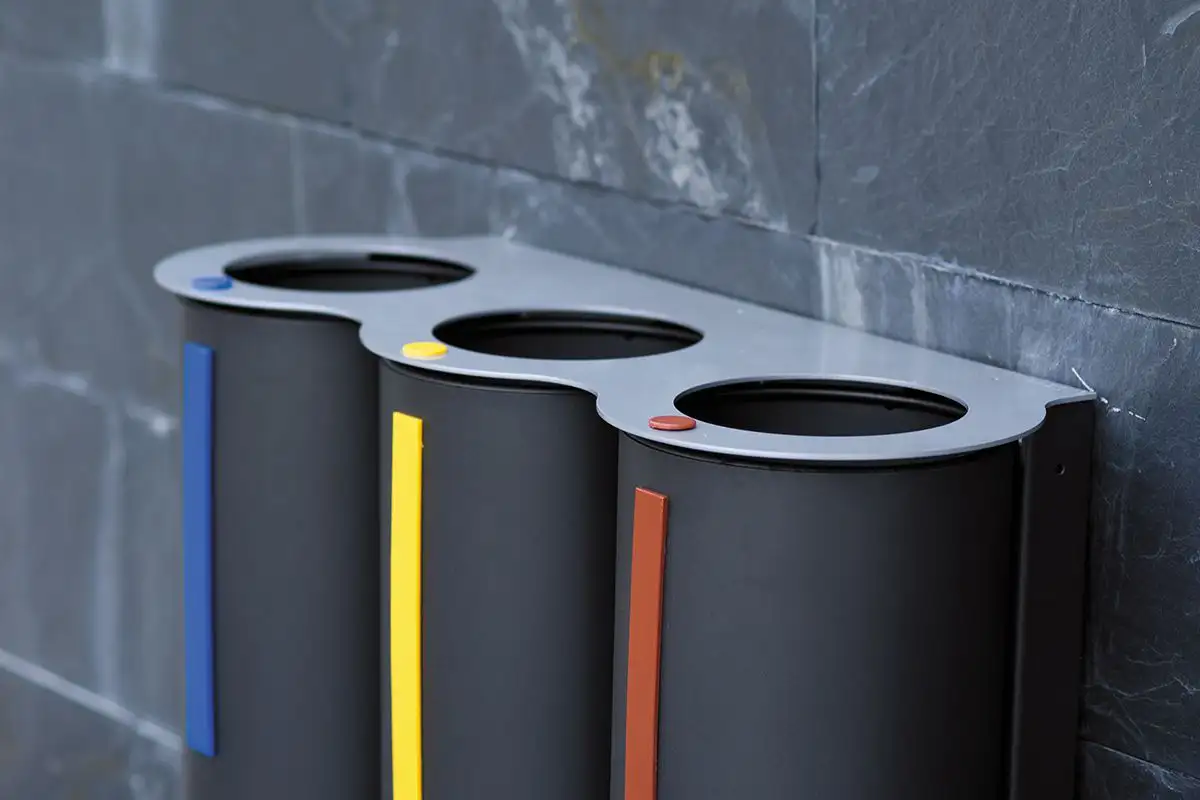 Conçue pour le tri, la corbeille urbaine SINGULAR existe en deux versions : à fixer au sol ou murale.Chaque version est équipée de trois bacs, chacun doté d’un indicateur de couleur : jaune pour les emballages et le plastique, bleu pour le papier et le carton, et marron pour les déchets organiques. Les corbeilles SINGULAR sont conçues pour accueillir un sac plastique facilitant le retrait des différents bacs.