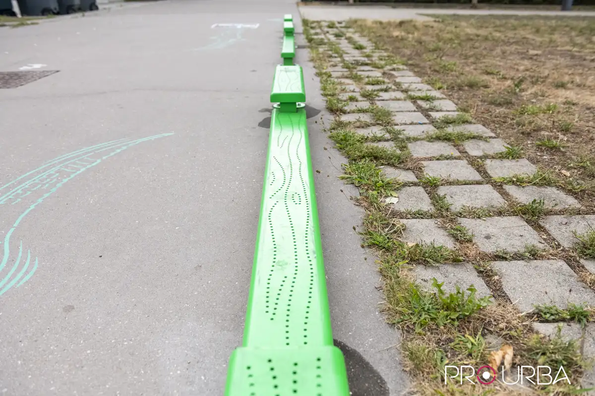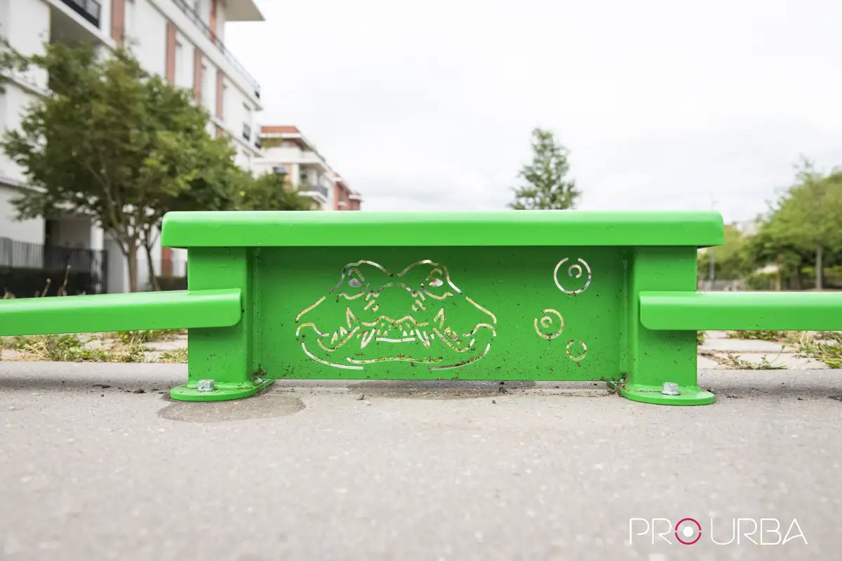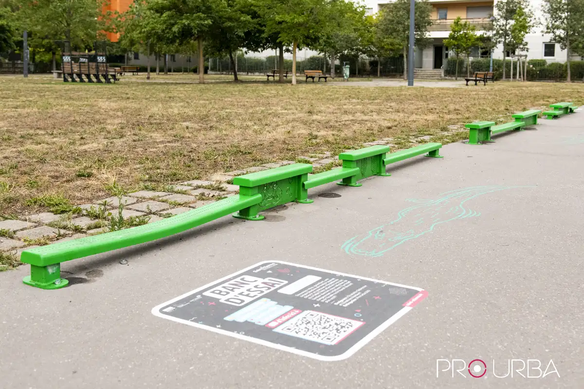 Mobilier ludique composé de trois poutres d'équilibre de différentes longueurs.Matériau: Acier finition primaire anticorrosion + peinture thermolaquée RAL au choix.
