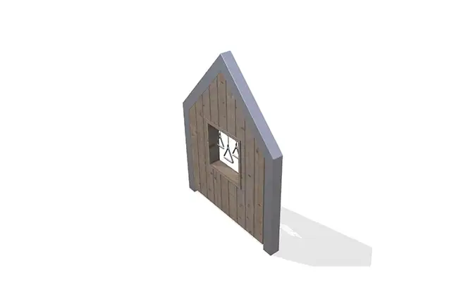 Créez des expériences ludiques sensorielles pour les enfants et laissez-les explorer les sons, les rythmes et le silence. La façade de la maisonnette comporte trois triangles dans la fenêtre.