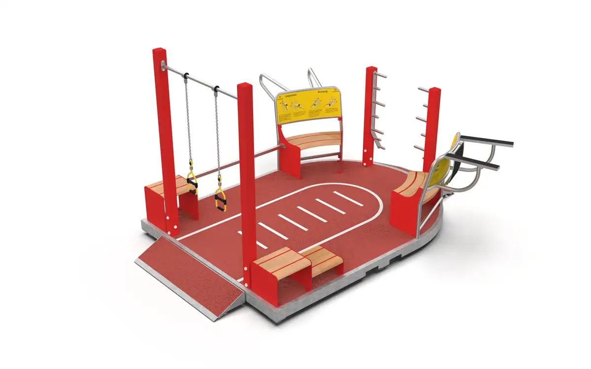 POCKETPARC® est synonyme de plates-formes modulaires qui offrent des solutions polyvalentes temporaires ou permanentes. Qu'il s'agisse de modules de fitness, de détente ou de loisirs, les produits POCKETPARC® créent des mini-parcs fonctionnels, améliorent la qualité de séjour et encouragent les loisirs actifs.Le POCKETPARC® URBANSPORT FITNESS révolutionne l'entraînement en plein air: un encombrement minimal pour une polyvalence maximale. Le module de fitness extérieur multifonctionnel permet à huit personnes maximum de s'entraîner simultanément et efficacement sur tous les grands groupes musculaires, qu'il s'agisse de force, d'endurance ou de coordination.L'équipement standard comprend :- anneaux de suspension- station pour abdominaux/troncs- Plate-forme de squat- Jump box- Mini slackline- station push/pull- Barre à dips- Low-Bar- Deux fauteuils ABB (bras/jambes/abdomen)- Instructions pour les exercicesGrâce à sa construction portable, le POCKETPARC® est installé et prêt à l'emploi en très peu de temps. Ainsi, chaque surface - places urbaines, parcs ou cours de récréation - se transforme en un clin d'œil en un lieu de rencontre actif.