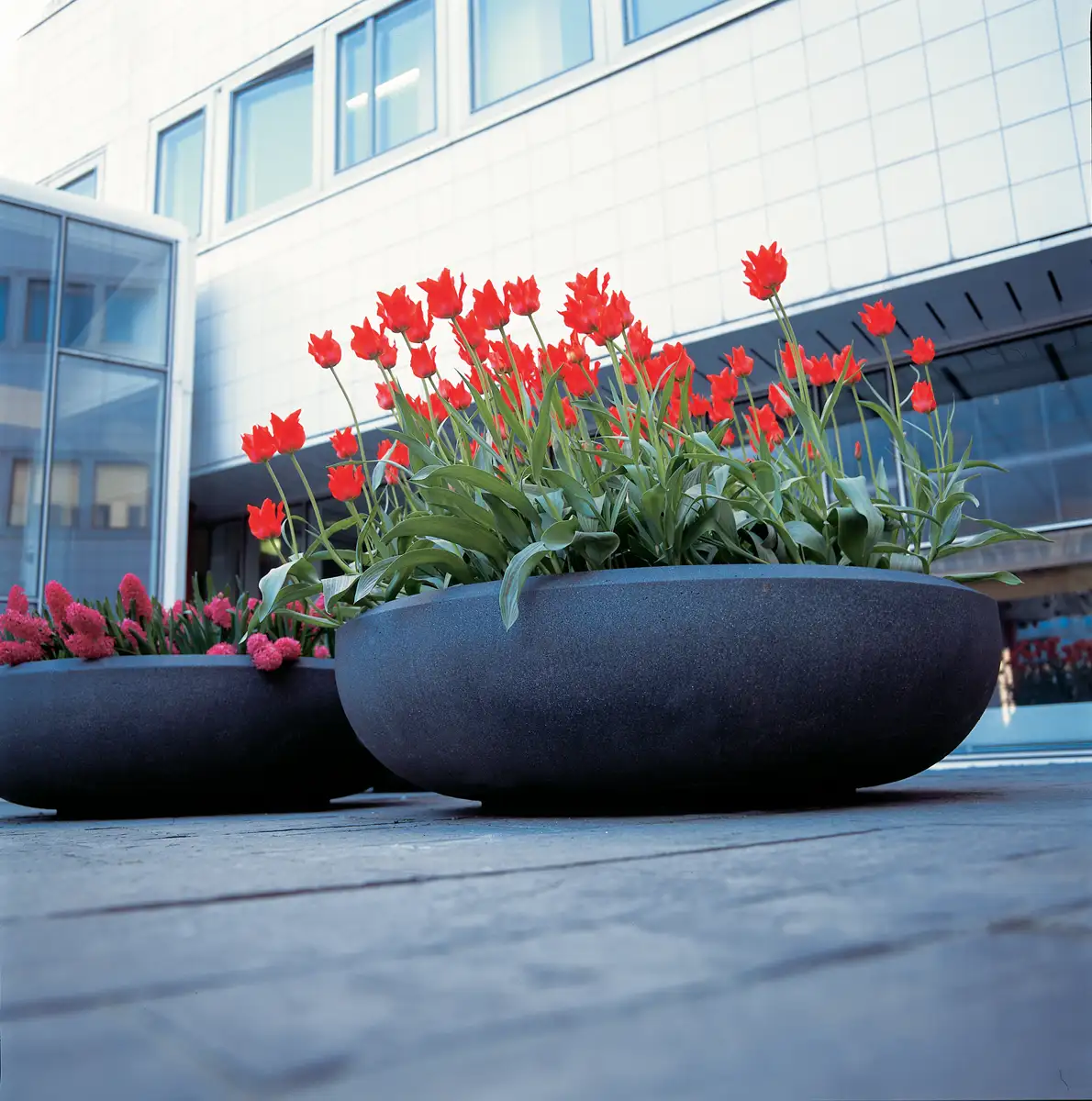 La gamme BOBOLI est composée de poteries aux formes douces et galbées qui accrochent ombres et lumières et lui confèrent un design contemporain. Les poteries BOBOLI permettent d’intégrer des parterres de fleurs ou des plantations plus gourmandes en réserve de terre.Un matériau unique : Le béton de résine est un élément composite constitué de résine polyester, de fins agrégats naturels et de fibres de verre. Il bénéficie de propriétés particulièrement intéressantes pour les milieux urbains.Son aspect est similaire à celui de la pierre naturelle, mais a la particularité d’être bien plus résistant aux chocs et beaucoup plus léger.Disponible en 10 coloris.Options disponibles : Traitement anti-graffiti / Anneaux intérieurs de levage.Autres dimensions disponibles : 65x70cm / 90x38cm / 90x70cm / 90x90cm / 120x70cm / 130x70cm / 130x100cm et 180x38cm.CONCEPTION TUP