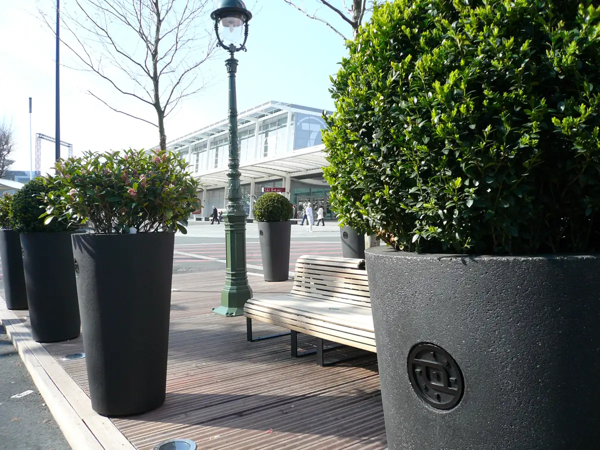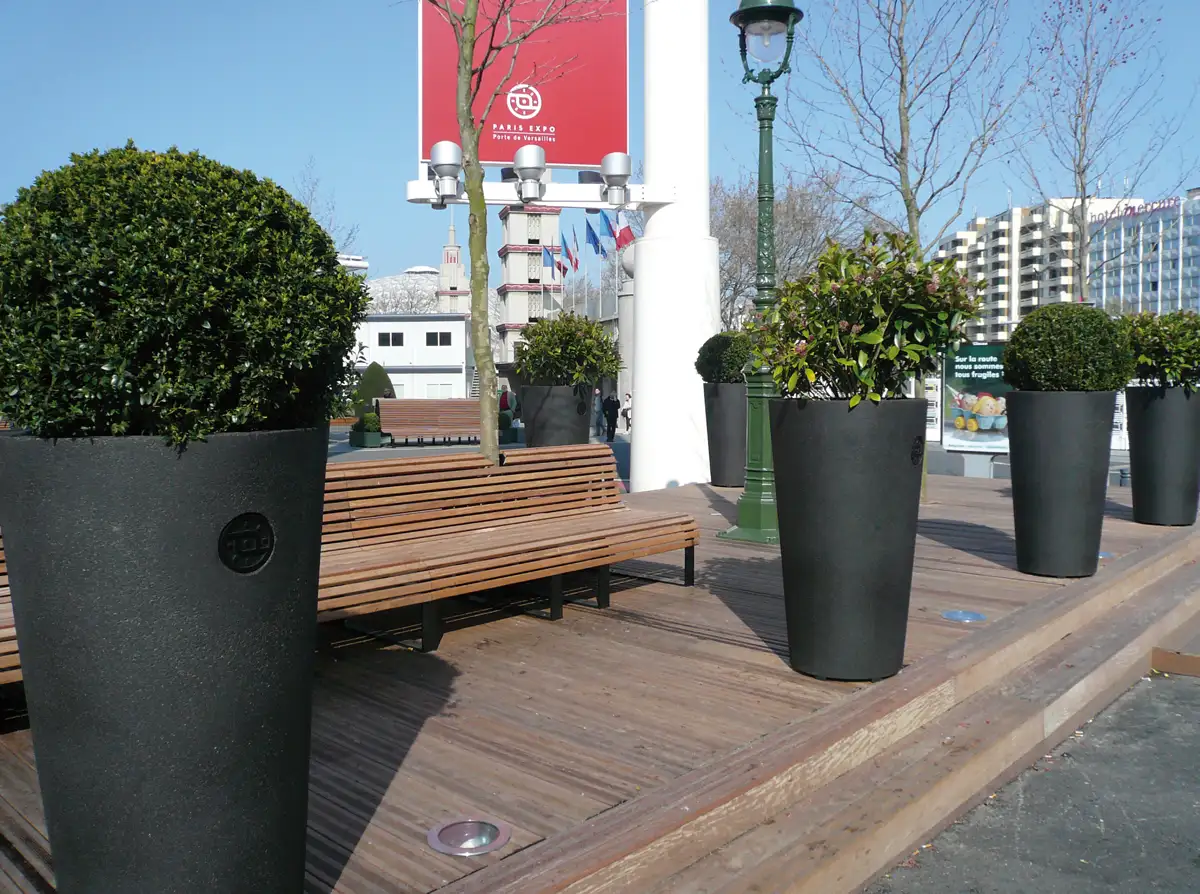 Grâce à leur forme simple et élégante, les poteries VENDOME permettent de créer des ambiances multiples et de réaliser des alignements géométriques parfaits. Idéal pour une intégration dans de nombreux sites tels que rues piétonnes, entrées d’hôtels, centres d’expositions, jardins de prestige... La poterie VENDOME existe également dans des dimensions exceptionnelles, capables d’accueillir de grands végétaux.Un matériau unique : Le béton de résine est un élément composite constitué de résine polyester, de fins agrégats naturels et de fibres de verre. Il bénéficie de propriétés particulièrement intéressantes pour les milieux urbains.Son aspect est similaire à celui de la pierre naturelle, mais a la particularité d’être bien plus résistant aux chocs et beaucoup plus léger.Disponible en 10 coloris.Options disponibles : Traitement anti-graffiti / Anneaux intérieurs de levage.Autres dimensions disponibles : 57x75cm / 65x100cm / 140x120cm / 170x170cm et 200x120cm.