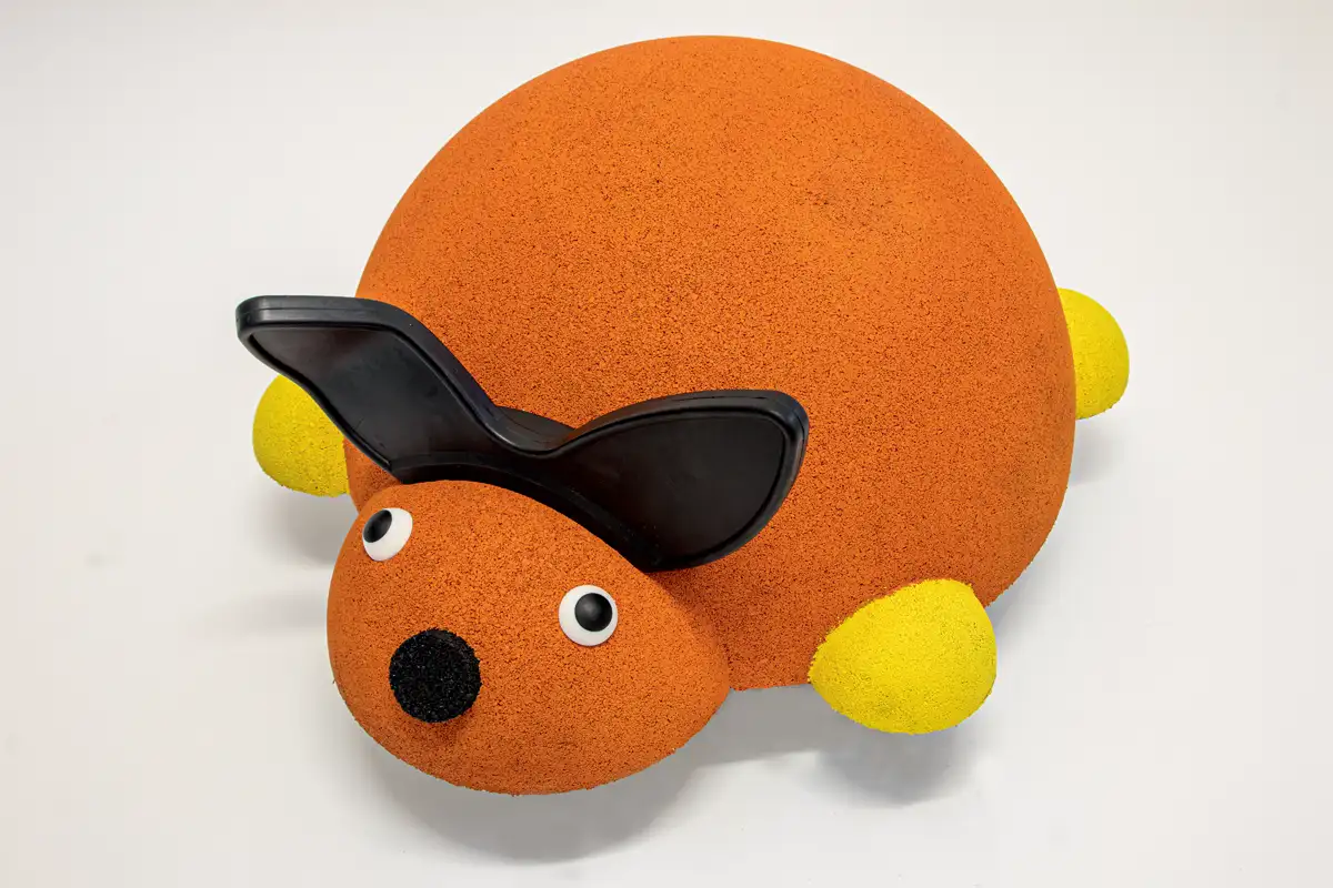 Grâce aux sculptures ludiques, l'aire de jeu se transforme en un lieu où s'affairent de drôles de coléoptères et de petits animaux solidement fixés au sol.