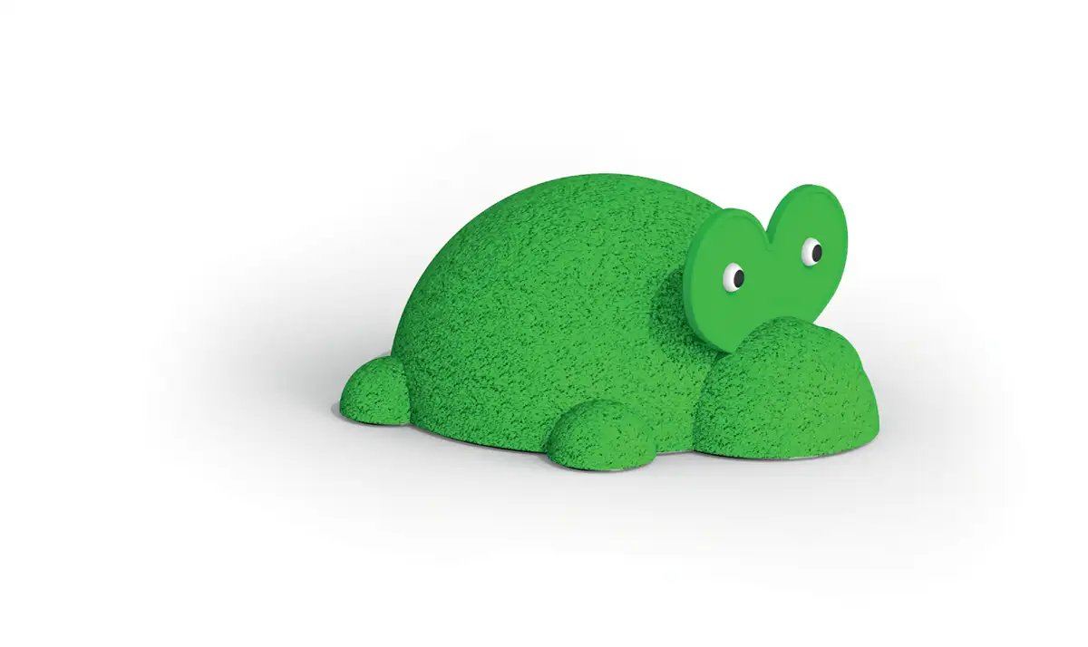 Grâce aux sculptures ludiques, l'aire de jeu se transforme en un lieu où s'affairent de drôles de coléoptères et de petits animaux solidement fixés au sol.