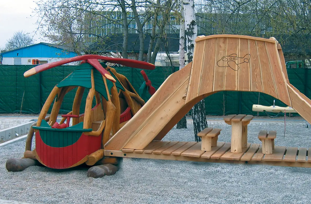 Combinaison de jeux avec surface de glisse en acier inoxydable.Hauteur de plateforme: 1,20m.Matériaux: robinier écorcé sans aubier - acier inoxydable.Coloris (option lasuré) : peinture à base d'eau.Assemblage : type A2 avec tiges filetées, boulonneries autobloquantes en acier inoxydable et capuchons de protection.Dimensions données à titre indicatif: le design des équipements de jeux est basé sur les formes naturelles des branches, de leurs fourches et de leurs ramifications.Construction spécifique personnalisable: tranche d'âge et hauteur de chute peuvent évoluer selon les aménagements demandés.