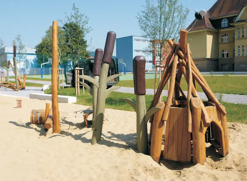 Combinaison de jeux comprenant: filets d'escalade et divers éléments d'équilibre.Hauteur de plateformes: 0,40 à 1,00m.Matériaux: robinier écorcé sans aubier - cordages Hercules.Coloris (option lasuré) : peinture à base d'eau.Assemblage : type A2 avec tiges filetées, boulonneries autobloquantes en acier inoxydable et capuchons de protection.Dimensions données à titre indicatif: le design des équipements de jeux est basé sur les formes naturelles des branches, de leurs fourches et de leurs ramifications.Construction spécifique personnalisable: tranche d'âge et hauteur de chute peuvent évoluer selon les aménagements demandés.
