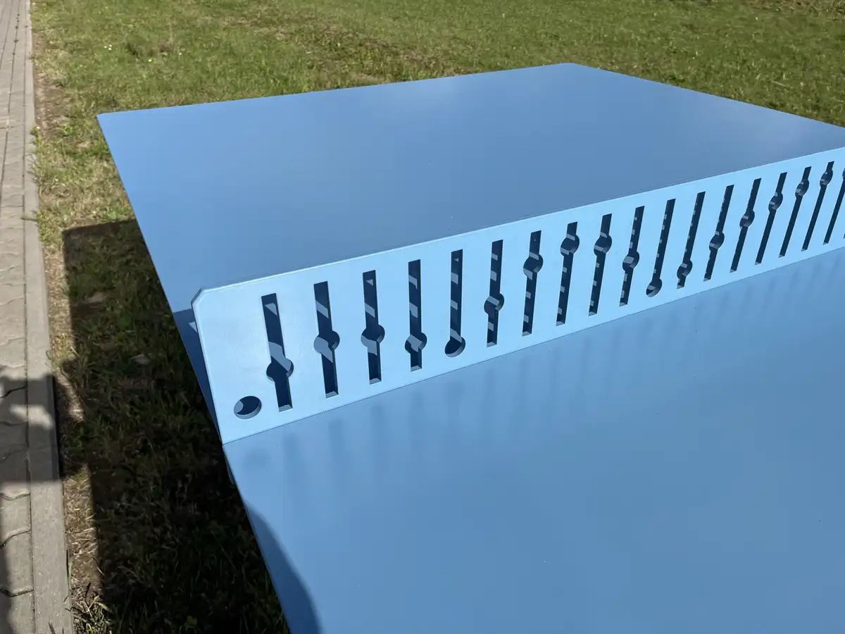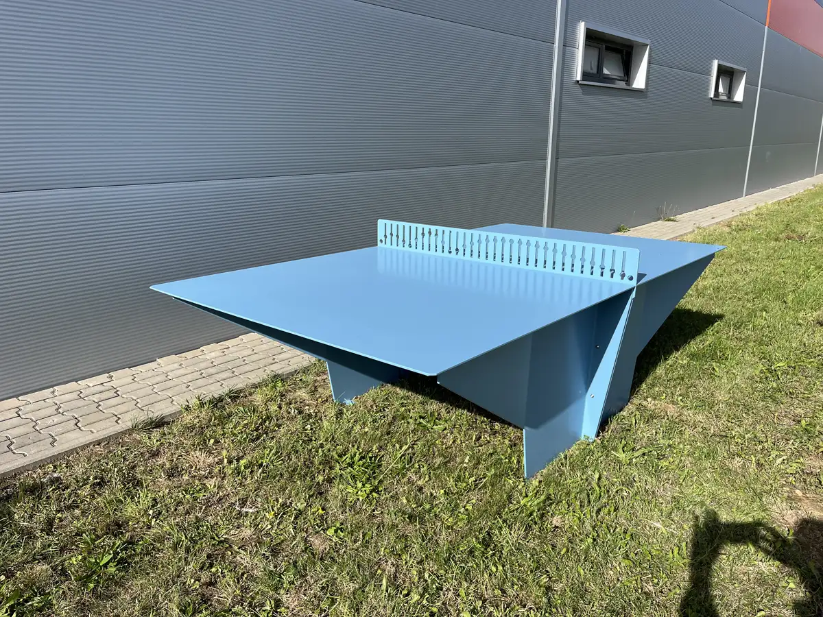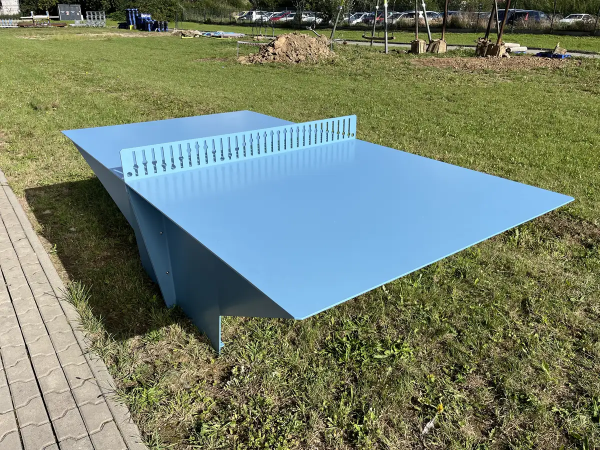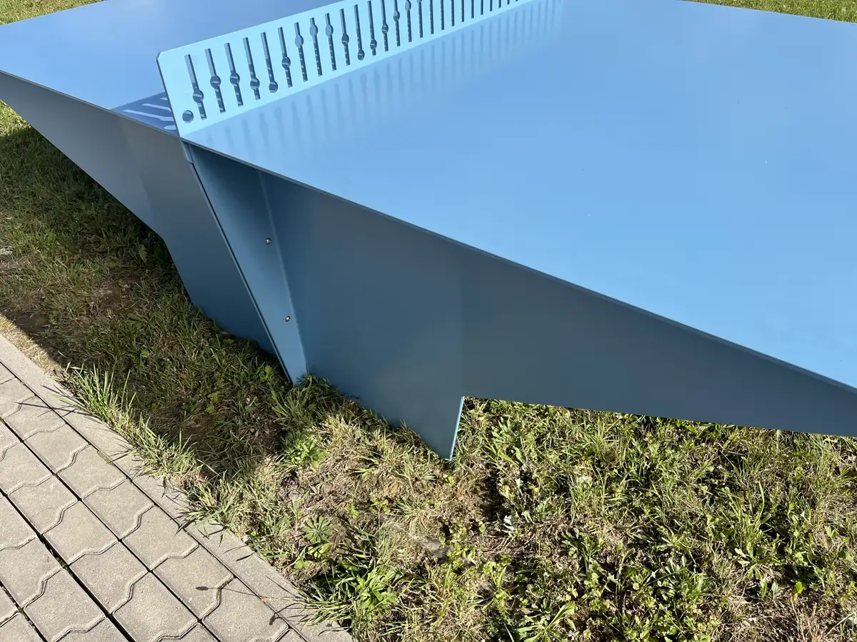 Table de ping-pong pour les jeux en plein air et les compétitions spontanées dans les espaces urbains et les cours d'école. Enfants et adultes peuvent se réunir autour de la table pour jouer en tête-à-tête ou organiser un petit tournoi en plein air.Le design est minimaliste, avec des lignes graphiques et des bordures ombrées. Le filet est intégré à la table et comporte une découpe graphique qui illustre la trajectoire parabolique de la balle de tennis de table sur la table. Un détail qui communique clairement la fonction de la table en rendant visuellement hommage au mouvement du jeu.Colris disponibles: RAL 5008 / RAL 5009 / RAL 5024 / RAL 6005 / RAL 6011 / RAL 3011 / RAL 3016 / RAL 1037 / RAL 9004 / RAL 7030 et RAL 9010.